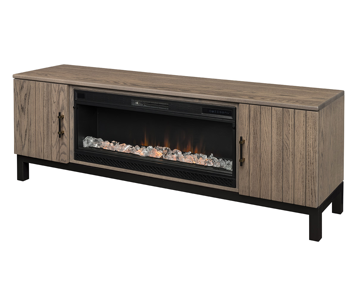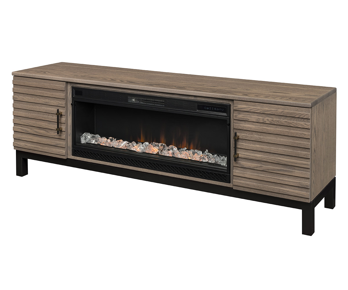 Features: • Slab doors • One adjustable shelf per side • Reversed panel sides • Thermostat controlled • Dimplex infrared insert with remote • Log or contemporary fireplace