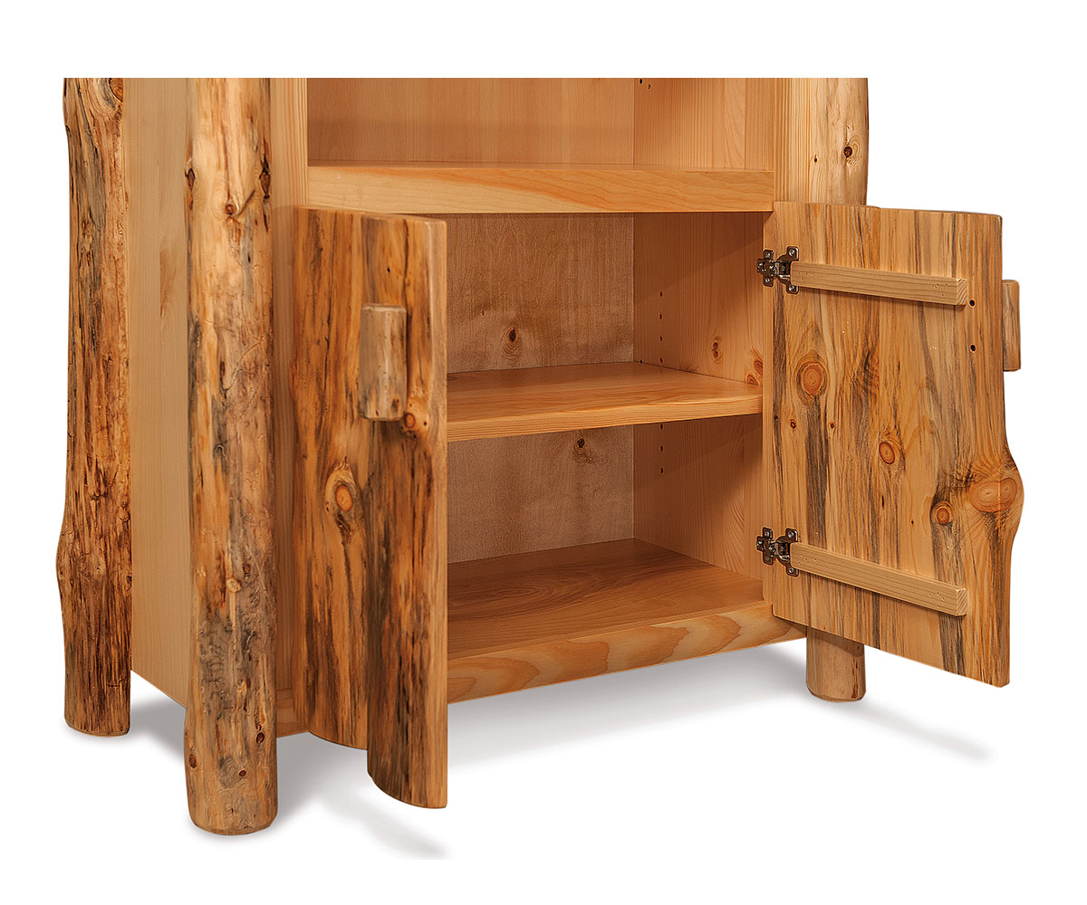 Features: • Each log is unique creating a unique piece of art • Each piece will look a bit different due to the variety of logs • Adjustable shelves • Slab front detail on the doors
