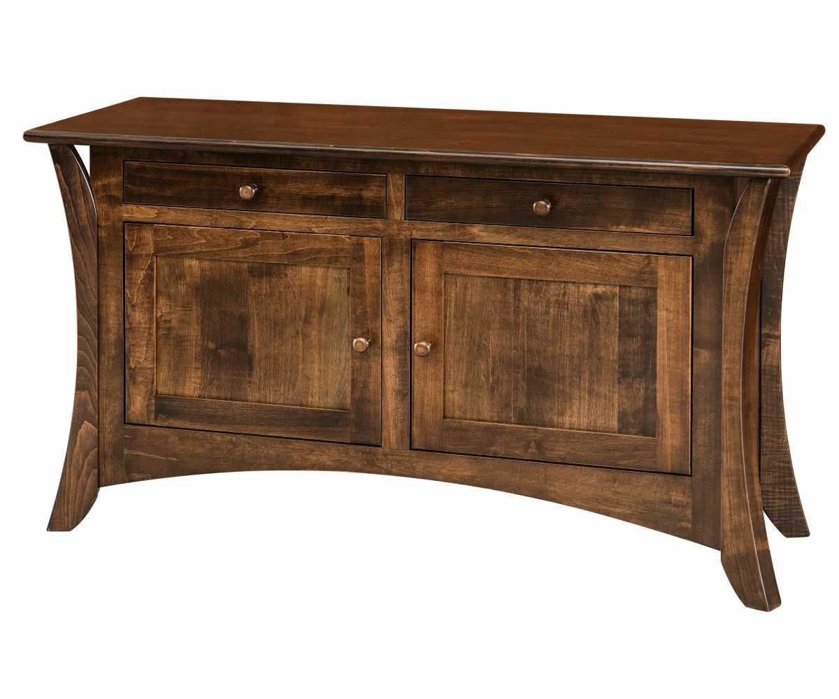 Features: • Dovetailed maple drawer boxes • Soft close drawer slides • One fixed shelf behind the set of doors • Unique curved legs