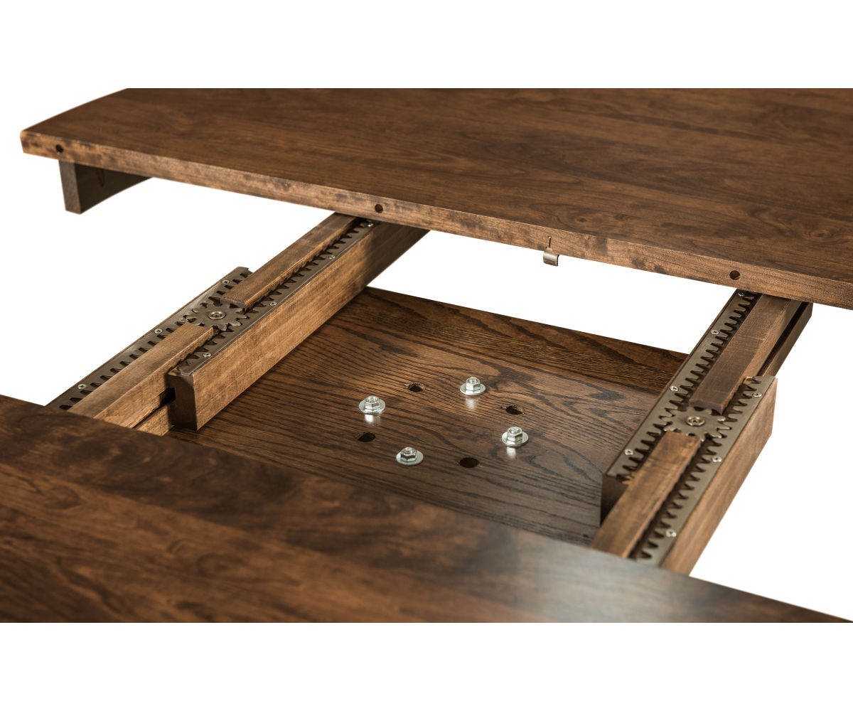 Sizes available with this design: 42″ Round • Solid Top, Seats 4 • Up to 2 leaves, Seats 6 48″ Round • Solid Top, Seats 4-5 • Up to 2 leaves, Seats 6-7