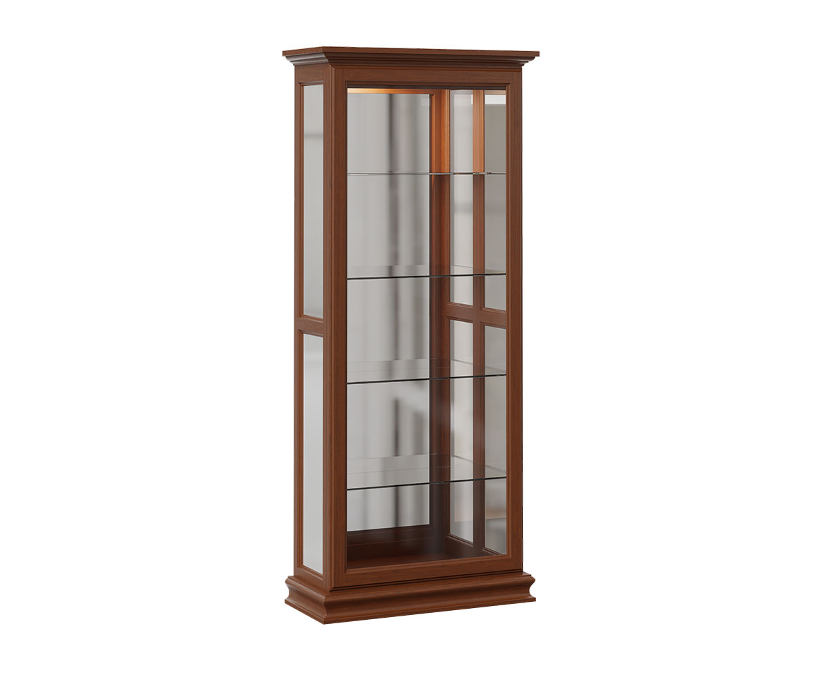 Features: • Door slides left • Mirror back • Four adjustable glass shelves with plate groove