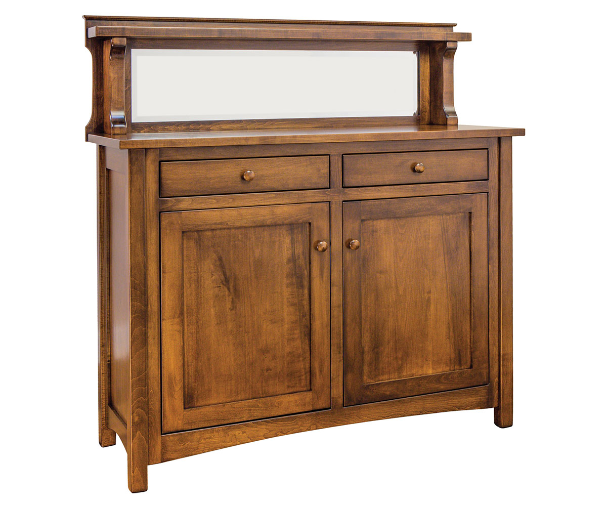 Features: • Mirror on top of buffet • Dovetailed drawers with soft close drawer slides • Soft clothes door hinges • One adjustable shelf behind the set of doors
