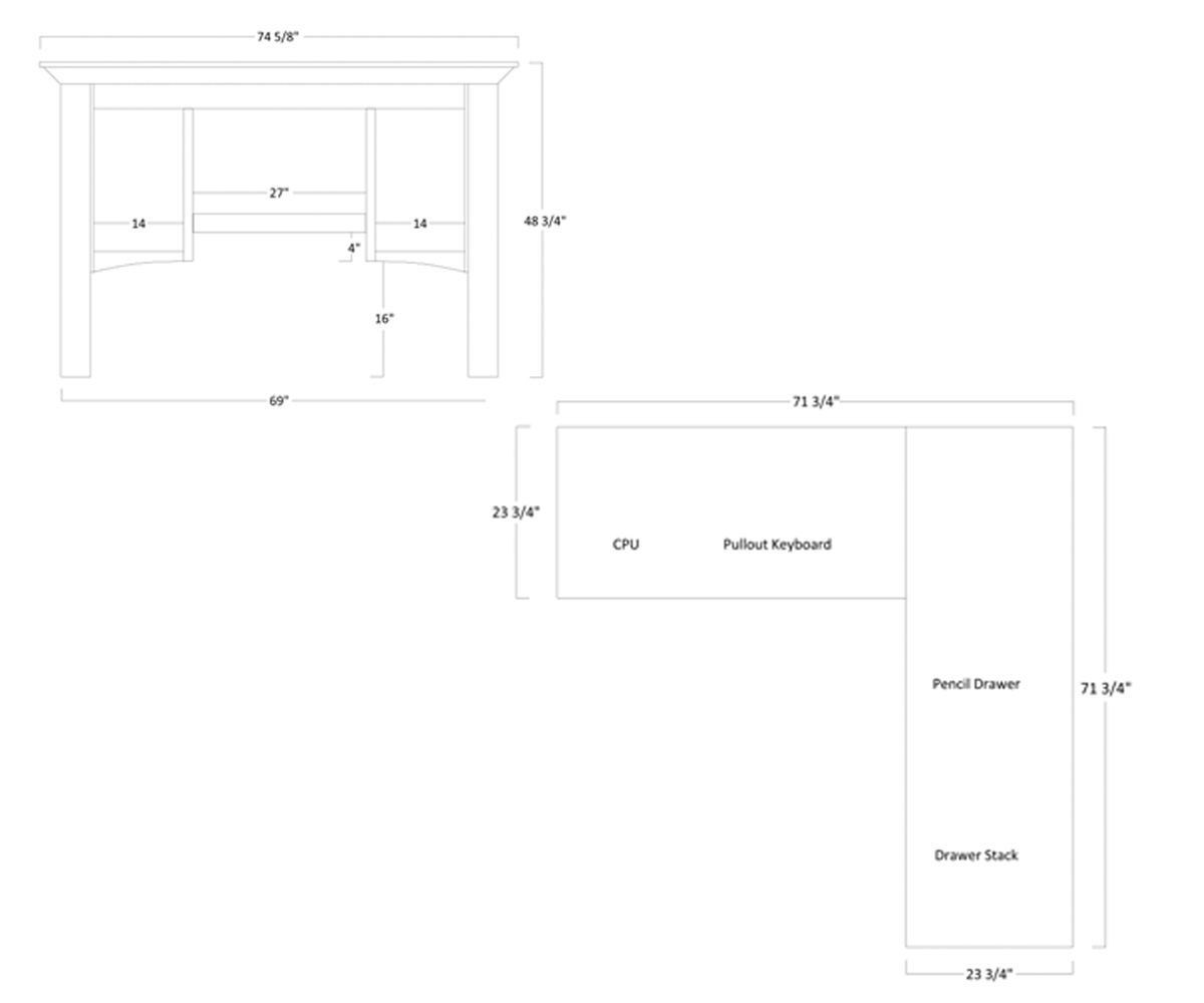 Desk: 71¾”W x 71¾”D x 30½”H