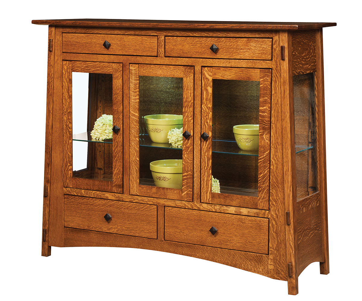 Features: • Dovetailed drawers with soft close drawer slides • Light above the glass shelf • One adjustable shelf behind the set of doors