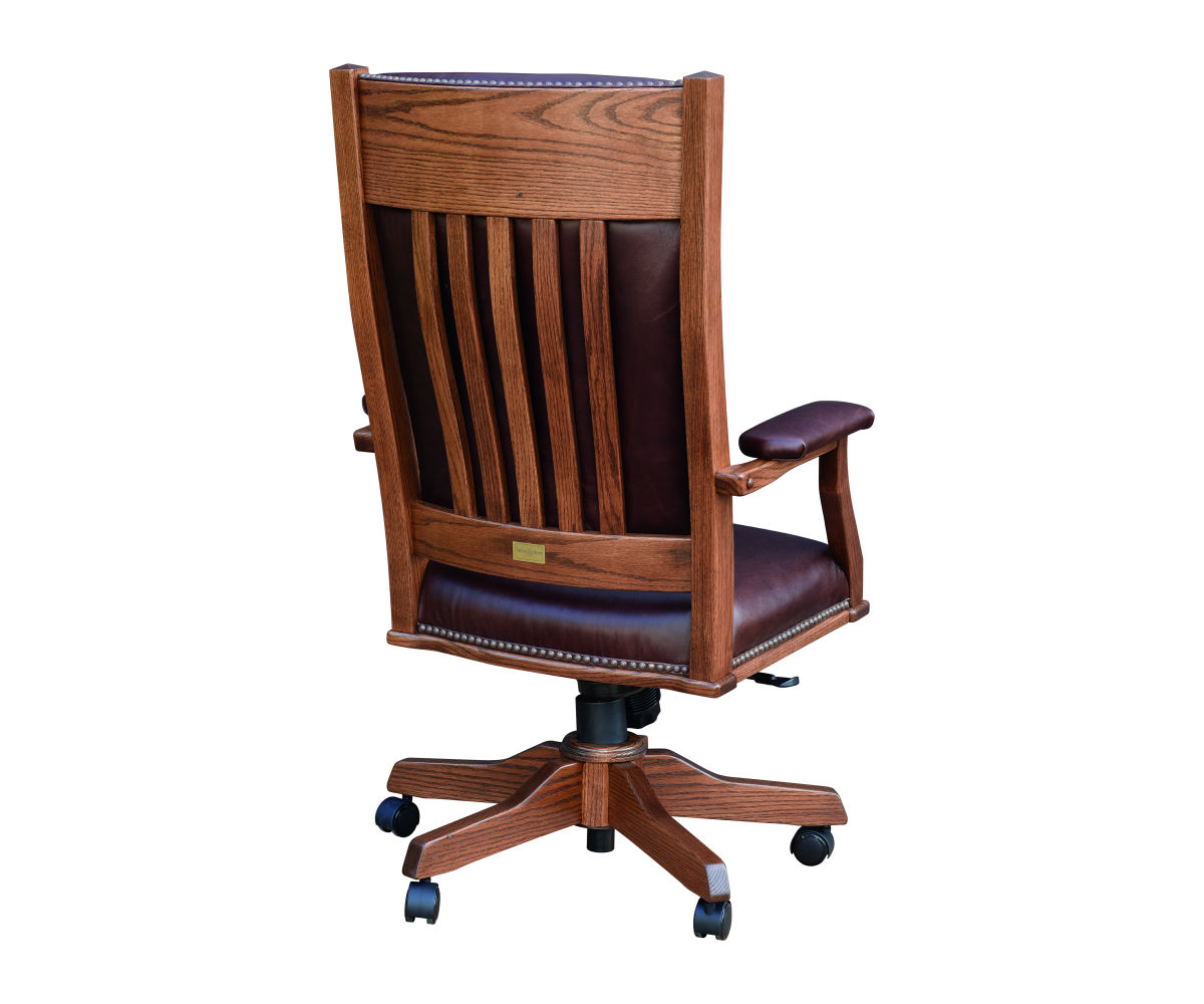 Features: • Durable steel frame, wood covered base • Gas lift to raise and lower the seat • Five star base for stability • Tilt lock function • Tilt tension adjustment • Shown with optional nail trim