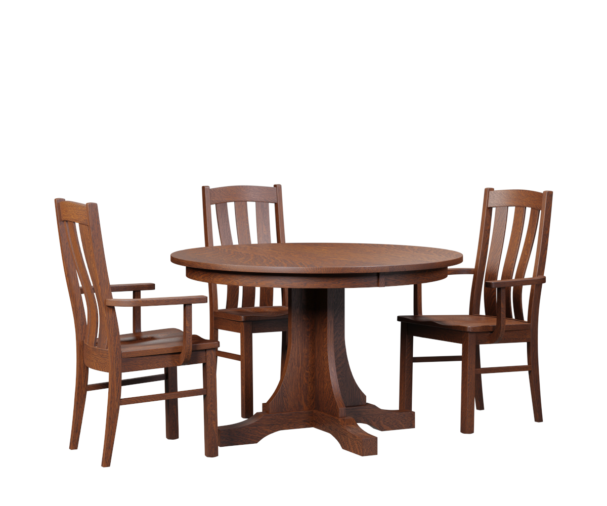 Common sizes available with seating options: • 42 x 42, Solid Top, Seats 4 • 42 x 42, 2 Leaves, Seats 6