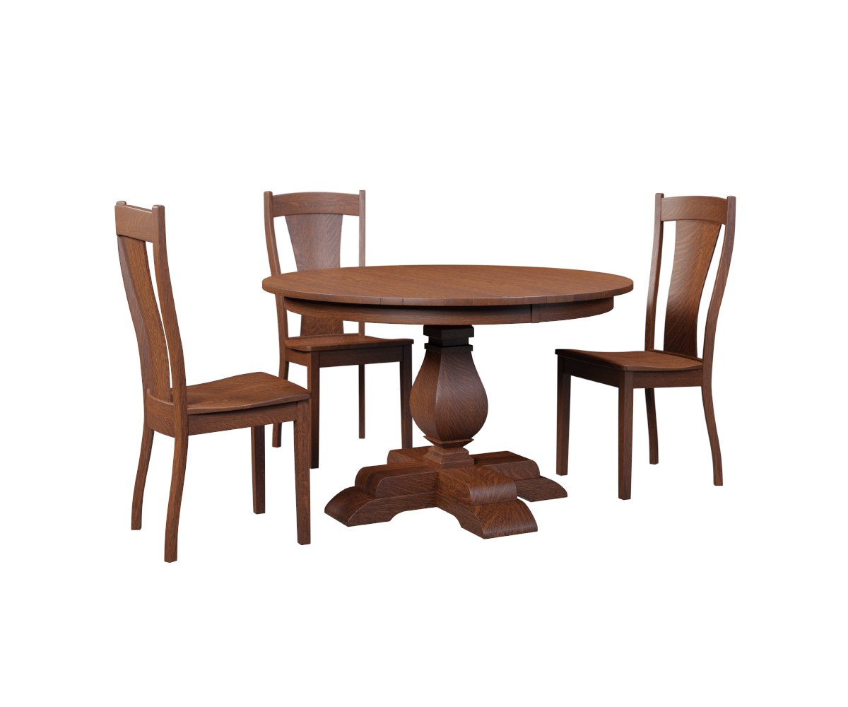 Features: • Round top • Eased edge • Available with up to two 12″ leaves • Geared slides to open table