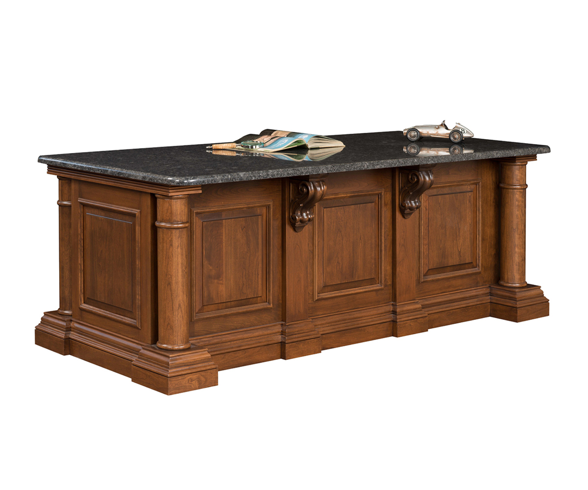 Options: • Steel grey granite top (shown) • Pullout keyboard in place of pencil drawer