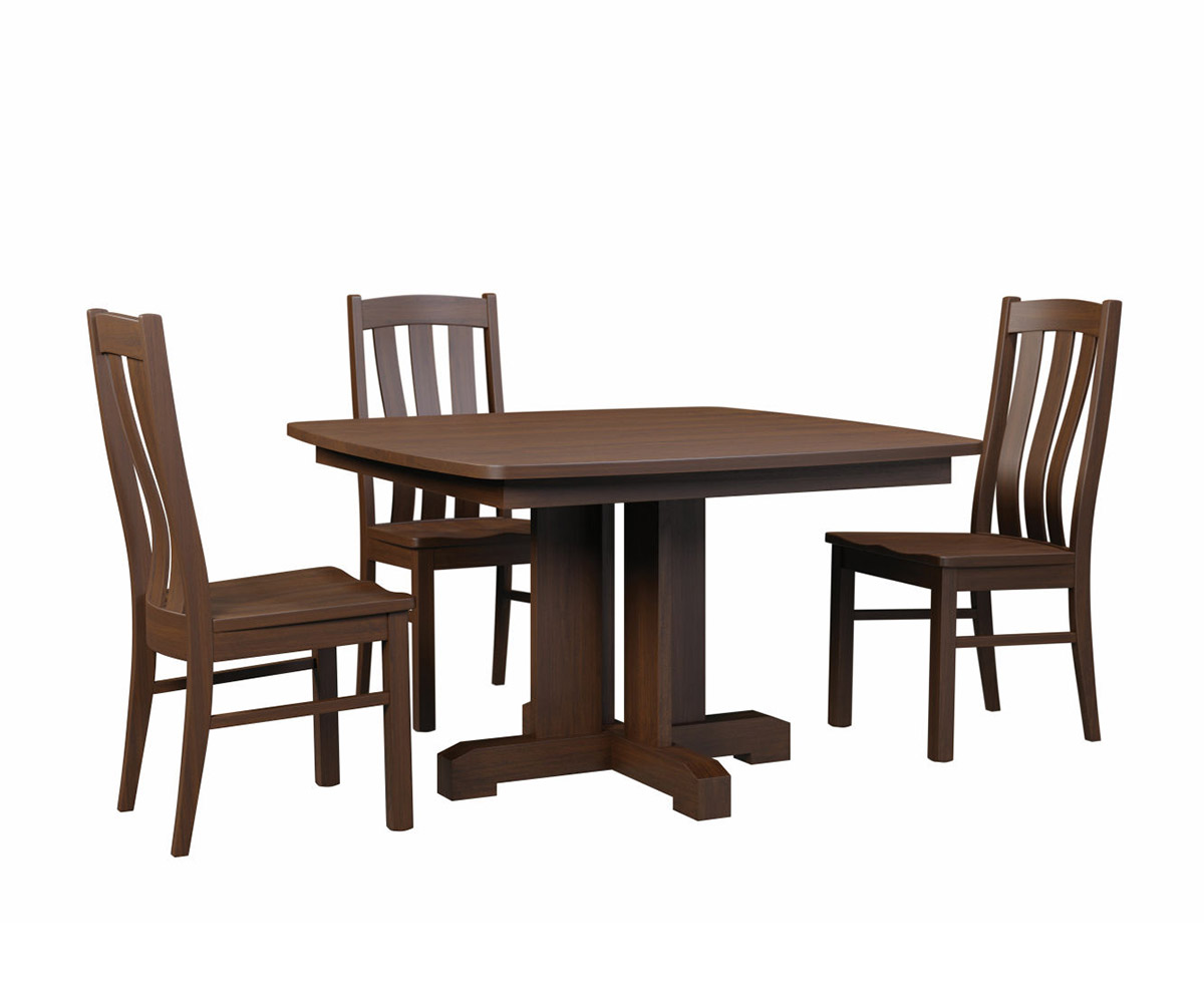 Common sizes available with seating options: • 42 x 42, Solid Top, Seats 4 • 42 x 42, 2 Leaves, Seats 6