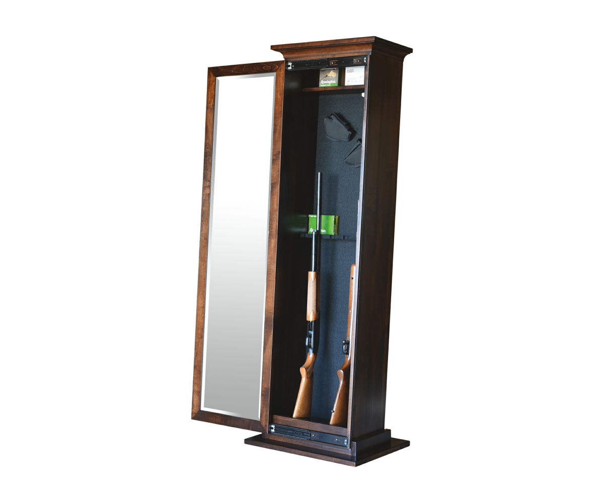 Features: • Sliding door • Holds up to six guns • Holds up to two pistol holsters • Rev-A-Shelf hidden magnetic lock