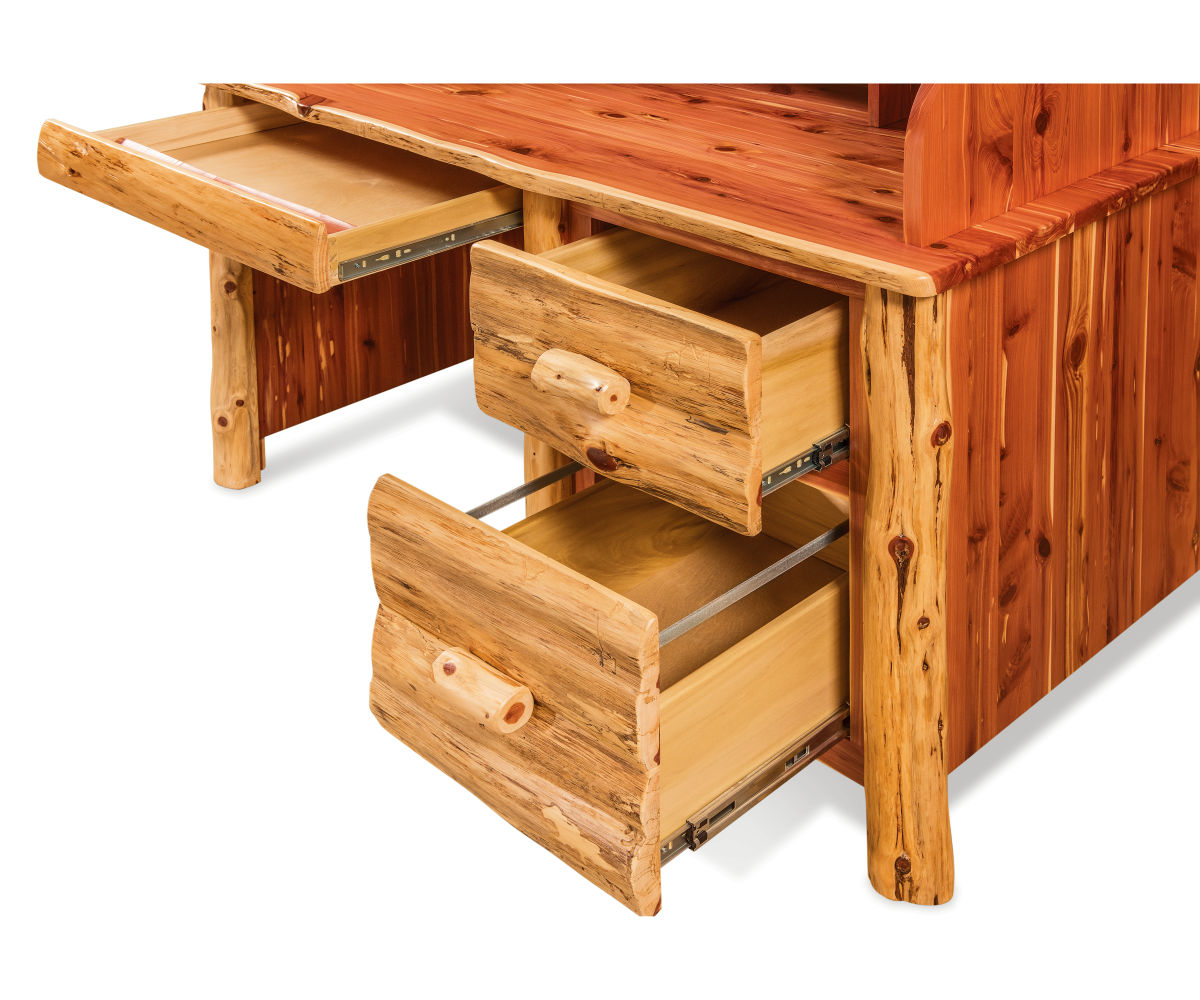 Features: • Each log is unique creating a unique piece of art • Each piece will look a bit different due to the variety of logs • Slab front drawers are dovetailed • Full extension soft close drawer slides