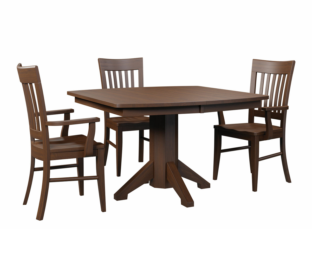 Common sizes available with seating options: • 42 x 42, Solid Top, Seats 4 • 42 x 42, 2 Leaves, Seats 6
