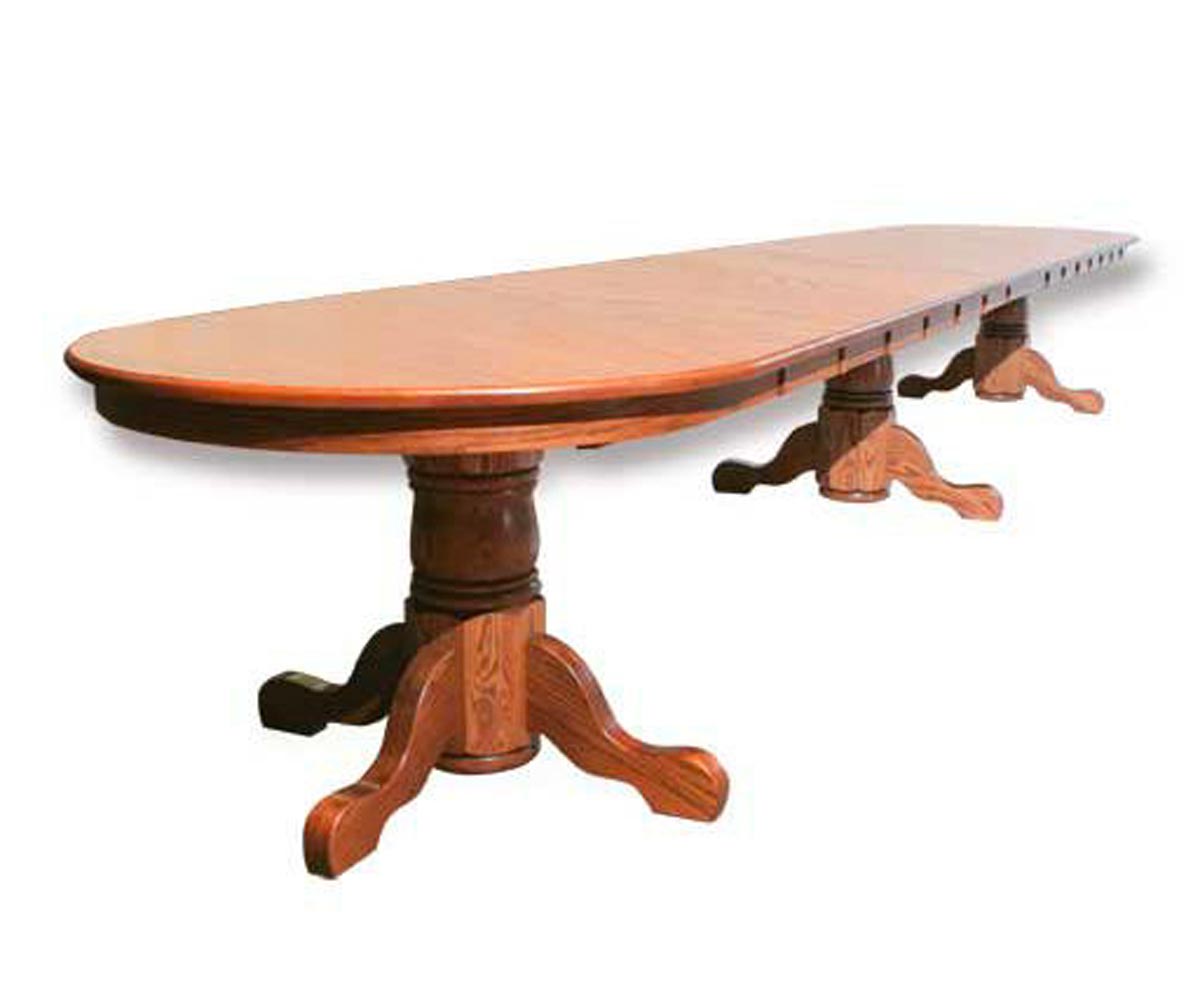 • Center pedestal is stationary for support as the table expands