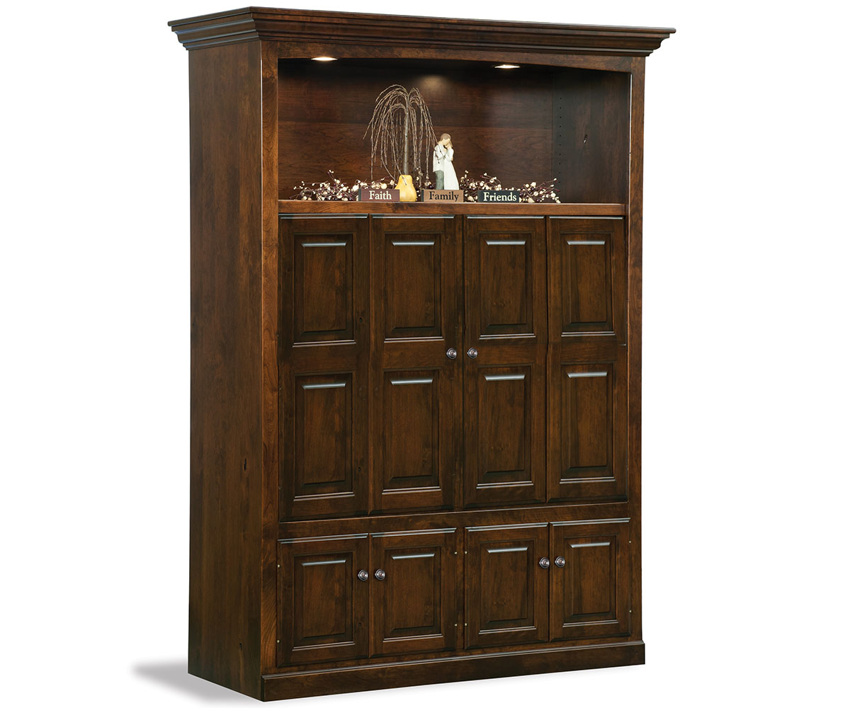 Features: • LED lighting in the top of cabinet • Adjustable shelf above the TV • Available TV openings: 45½”W to 60½”W in 5″ increments